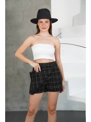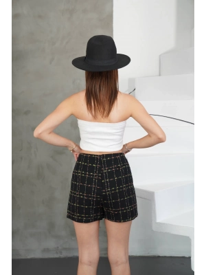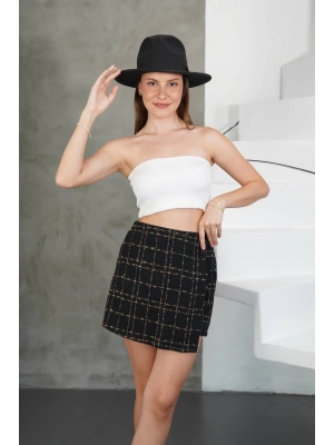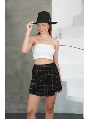 Fermuarlı Kısa Kürk Siyah Ekru T7746