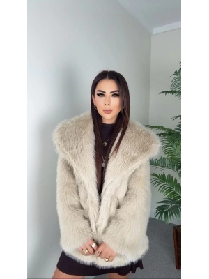 Önü Çıtçıtlı Loli Kürk Bej T4149