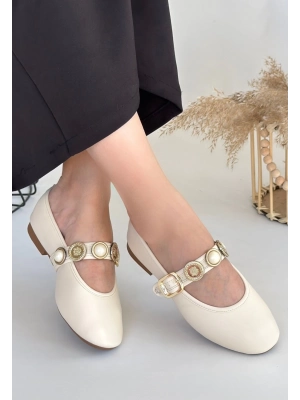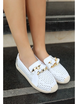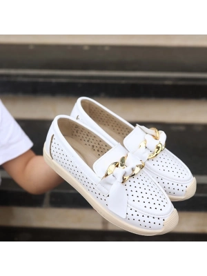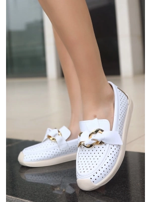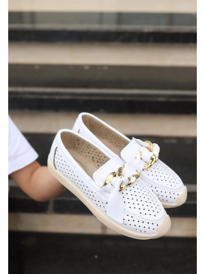 Popi Beyaz Cilt Zincirli Babet Ayakkabı