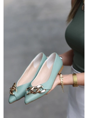 Popi Mint Yeşili Cilt Zincirli Babet Ayakkabı
