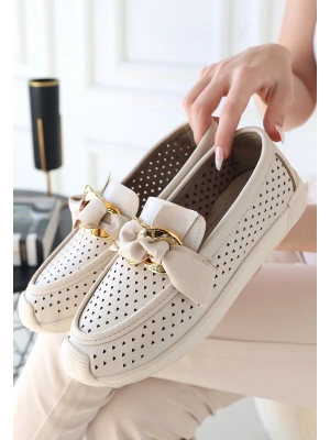 Riwan Beyaz Cilt Babet Ayakkabı - Bamido