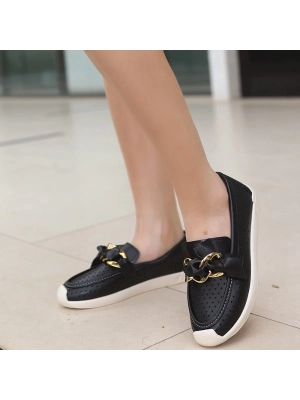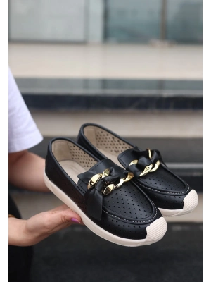 Koope Siyah Cilt Babet Ayakkabı - Bamido