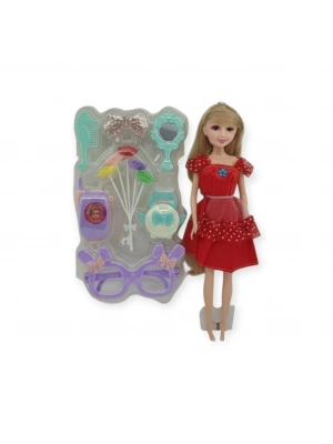 Güzellik Seti 7 Parça Aksesuarlı Bebek Seti - Kırmızı (bamido)