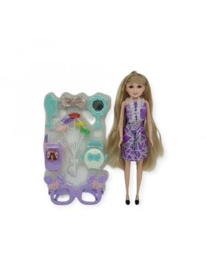 Güzellik Seti 7 Parça Aksesuarlı Bebek Seti - Mor (bamido)