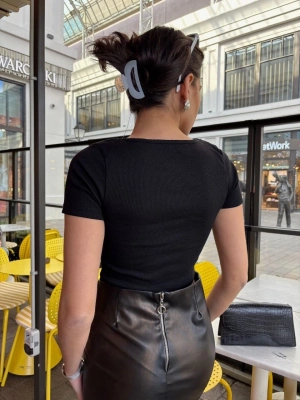 Kaşkorse Yaka Fermuarlı Bluz Siyah