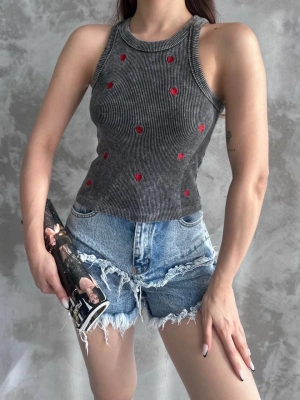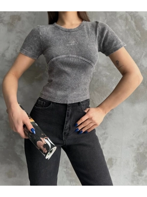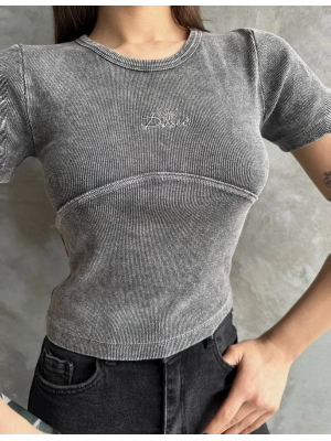Nakış İşlemeli Asit Yıkamalı Bluz
