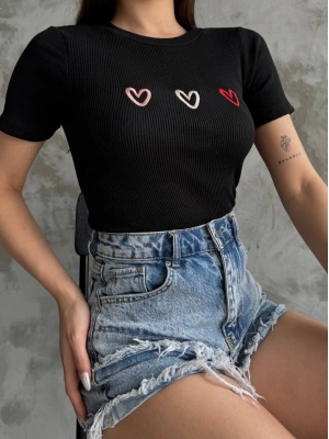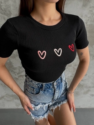 Üçlü Kalp Nakışlı Bluz