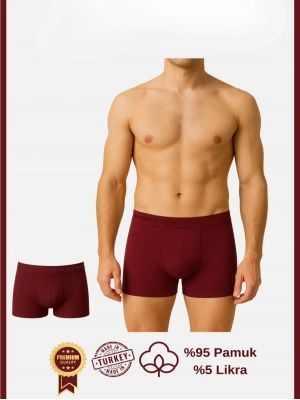 Pamuklu Düz Bordo Renk Erkek Boxer