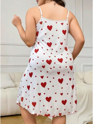 Büyük Beden Kalp Desen Pamuklu İnce Askılı Uzun Gecelik