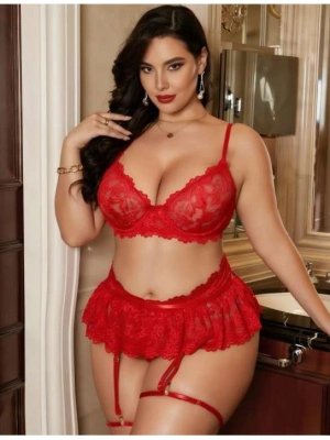 Büyük Beden Kırmızı Dantel İşlemeli Fantezi Jartiyer Takımı