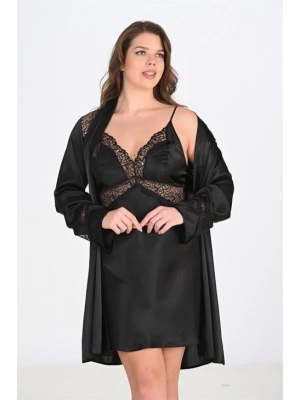 Büyük Beden 2li Siyah Sabahlık Takımı Bigsize
