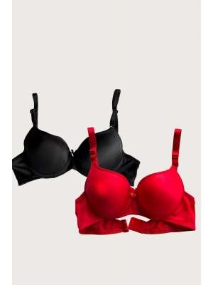 Siyah-kırmızı 2'li Mikro Kumaş İçi Boş Balenli Günlük Desteksiz Sütyen