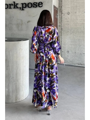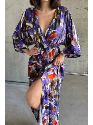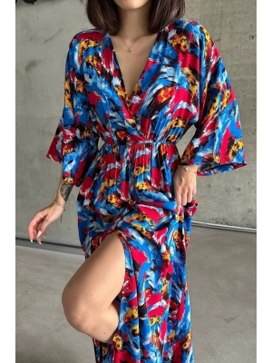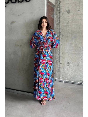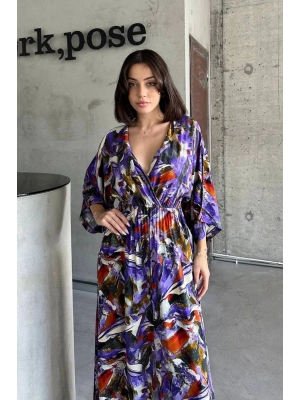 Dokuma Baskılı Yarasa Kol Elbise S8124