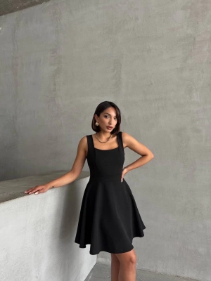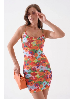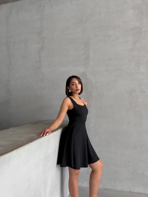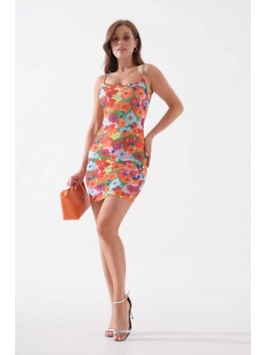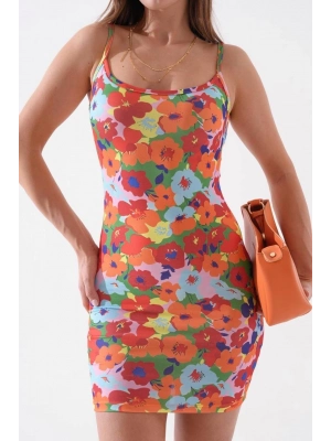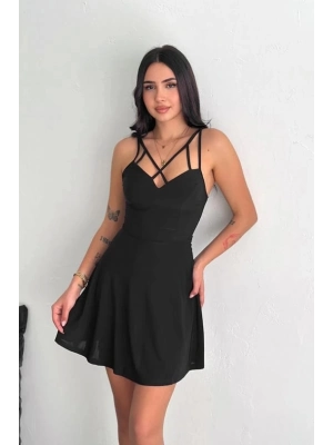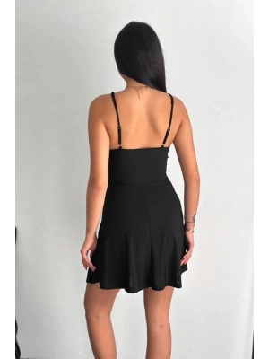 Kadın Siyah Leoparlı İnce Askılı Likralı Elbise S8105