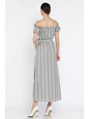 Madonna Yaka Midi Yırtmaçlı Kuşaklı Keten Elbise
