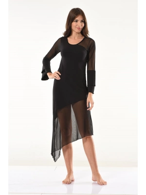 Kadın Tül Detaylı Midi Boy Yırtmaçlı Elbise