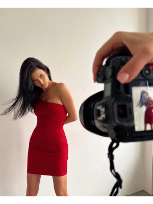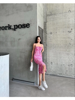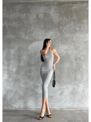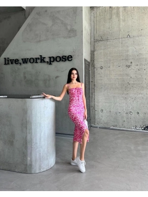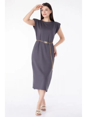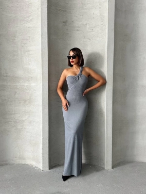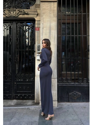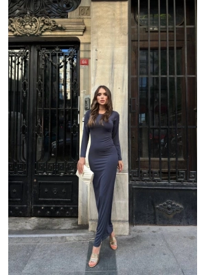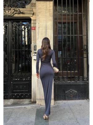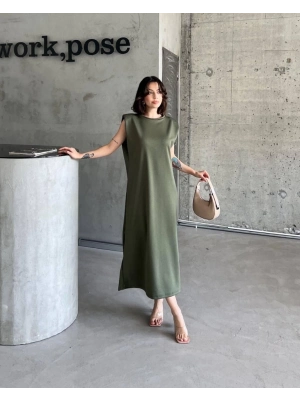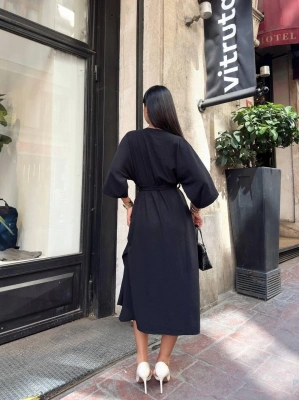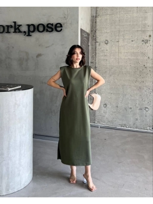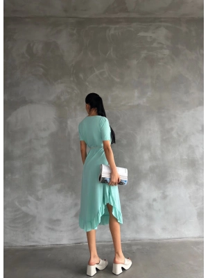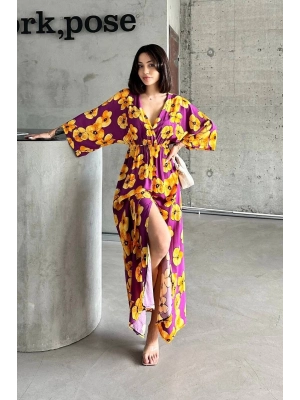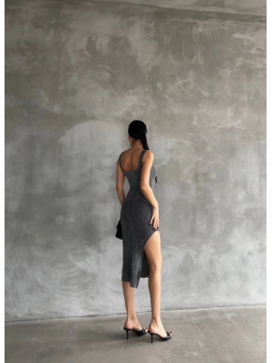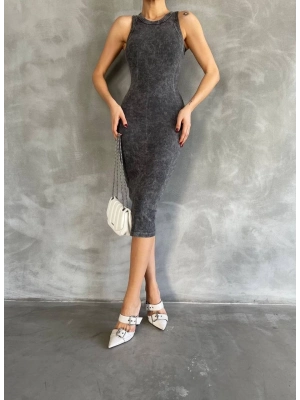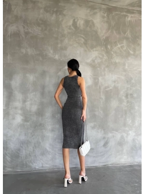 Kaşkorse Aşit Yıkamalı Yırtmaçlı Elbise