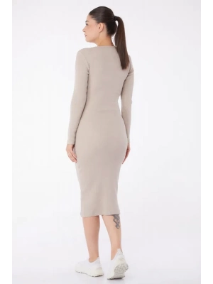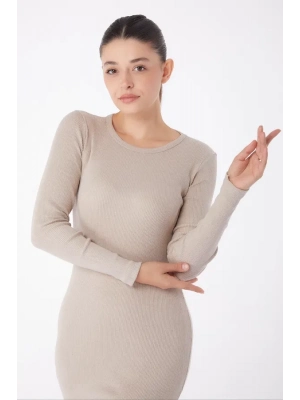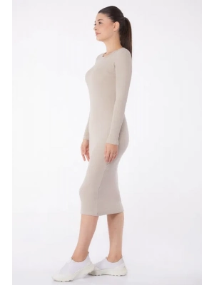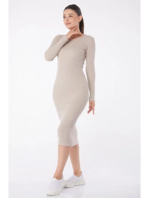 Düz Bisiklet Yaka Kadın Midi Elbise