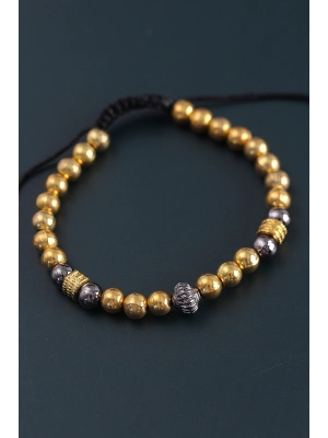 Doğal Taş Çember Model Gold Ve Füme Renk Asansörlü Erkek Bileklik - Bamido
