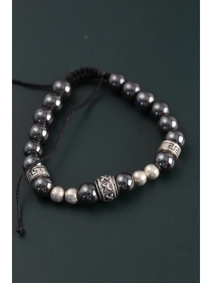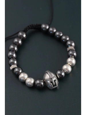 Doğal Taş Gladyatör Model Gümüş Ve Füme Renk Asansörlü Erkek Bileklik - Bamido