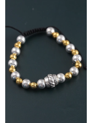 Doğal Taş Sarmal Model Gold Ve Gümüş Renk Asansörlü Erkek Bileklik - Bamido