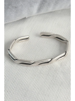 Otantik Gümüş Renk Motif İşleme Plaka Erkek Bileklik - Bamido
