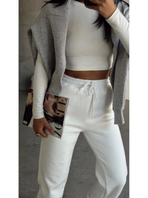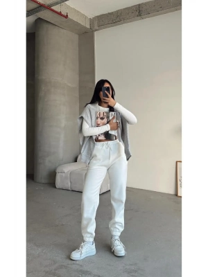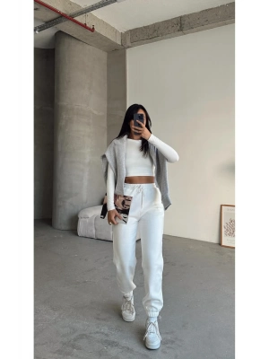 3 İplik Şardonlu Paça Lastikli Eşofman Beyaz İs001