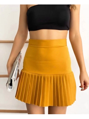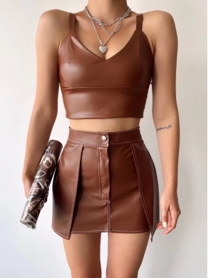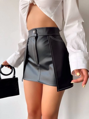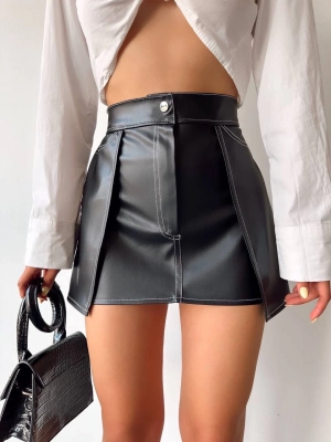 Beli Pervazlı Fermuarlı Eskitme Deri Etek W24431