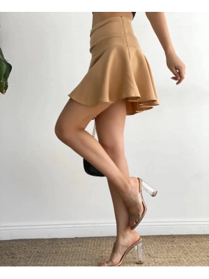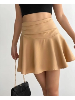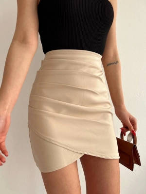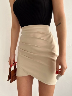Yandan Drapeli Asimetrik Etek Bej S24771