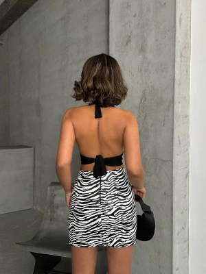 Tek Yırtmaçlı Zebra Desenli Deri Etek Beyazsiyah W24475-s