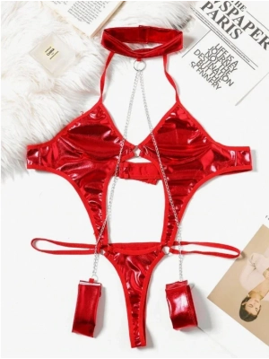 Tegan Fantezi Kırmızı Parlak Bodysouit