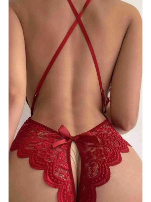 Arkası Açık Dantelli Kırmızı Fantazi Babydoll Tm1287