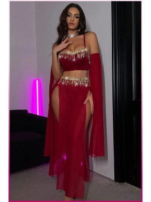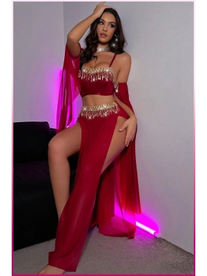 Dantel Transparan Kırmızı Badysuit 4'lü Takım 7003