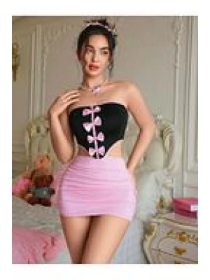 Pembe Özel Bölgesi Ve Göğsü Açık Büyük Beden Babydoll Tm1282