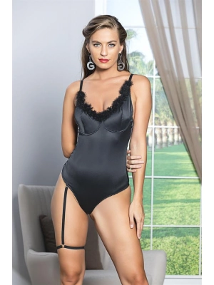 Saten Bacak Bantlı Çıtçıtlı Badi Siyah (brf11490)