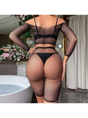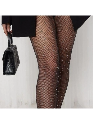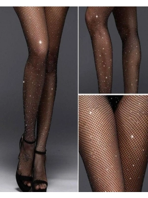 Kadın Göğüs Dekolteli Taşlı File Bodysuit Vucut Çorabı