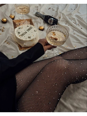 Siyah Fiyonklu Fileli Jartiyer Çorabı Tm1252