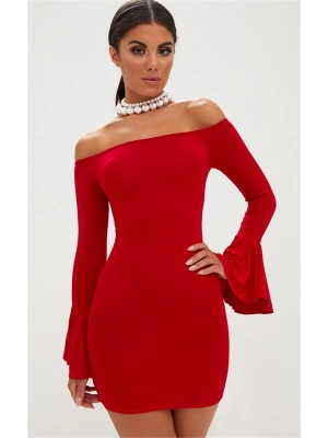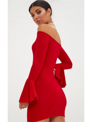 Beruflic Kırmızı İspanyol Kol Dar Elbise