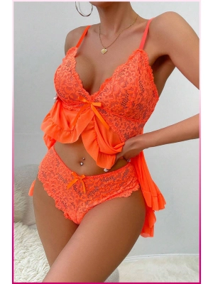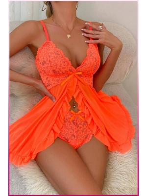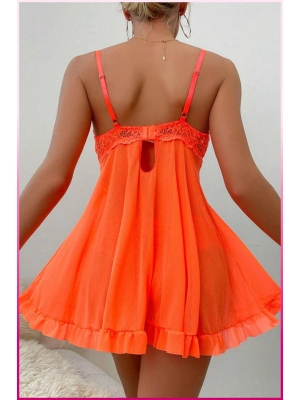 Kadın Zarif Turuncu Tül Gecelik Ve Külot Takım