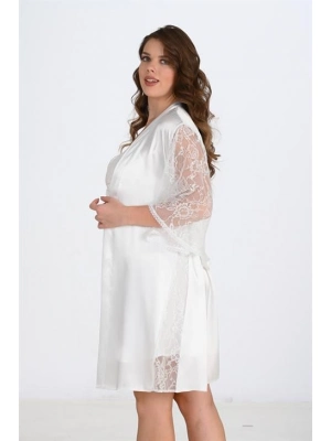 Büyük Beden 2li Ekru Sabahlık Takımı Bigsize