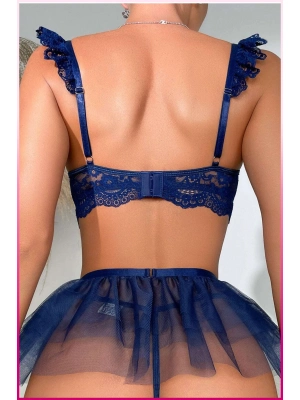 Kadın Lacivert Tül Etekli, Göğüs Balenli Fantazi Kostüm