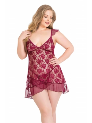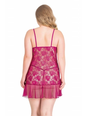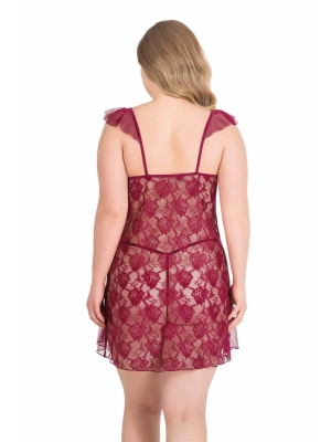 Beruflic Büyük Beden Vişne Kısa Tül Gecelik