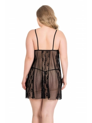 Beruflic Büyük Beden Siyah Kısa Tül Gecelik