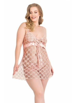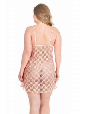 Beruflic Büyük Beden Somon Kısa Tül Gecelik