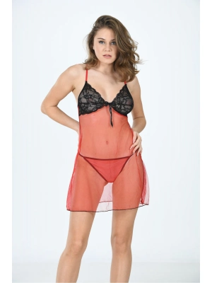 Kırmızı Dantel Gecelik - 114
