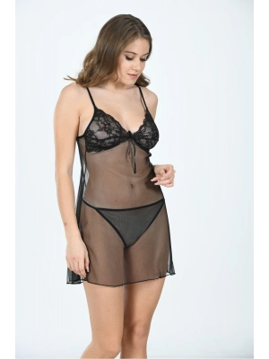 Siyah Dantel Gecelik - 601