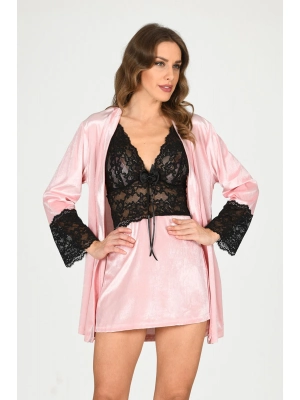 Vizon Kadife Dantelli Sabahlık & Gecelik Takım 2' Li - 1394