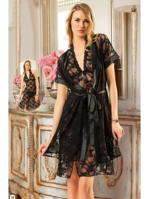 Siyah Dantelli Sabahlık & Gecelik Takım 2' Li - 1407