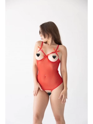 Göğsü Ve Arkası Açık Kırmızı Fantazi Babydoll Gecelik Tm1292