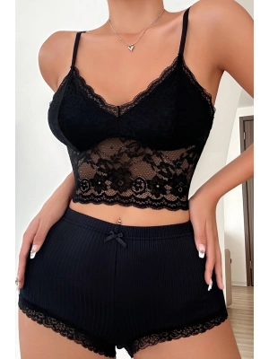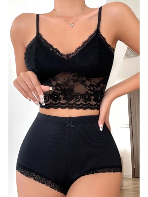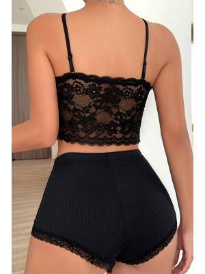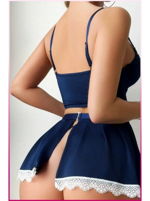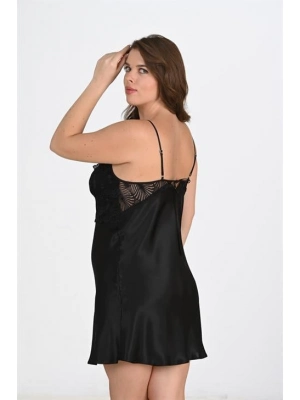 Siyah Arkası İp Detaylı Fantezi Mini Gecelik